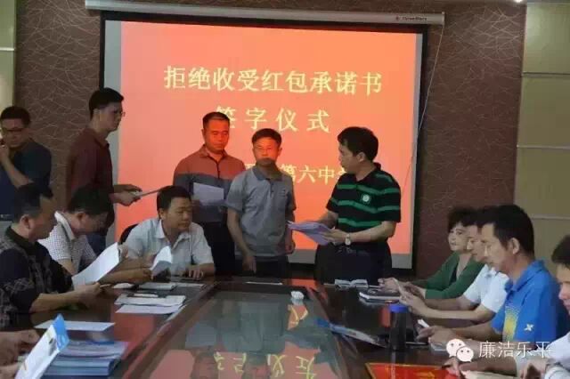 近日,市第六中学组织开展了“拒绝收受红包,捍卫教育净土”专题活动。该校深入贯彻落实十八大和十八届三中、四中全会精神,深入贯彻落实中央和省、市纪委全会及反腐败工作会议精神,根据省教育厅治理红包实施办法的要求,结合工作实际重点围绕教师收受红包、有偿补课、私自订购教辅资料等进行专项治理。